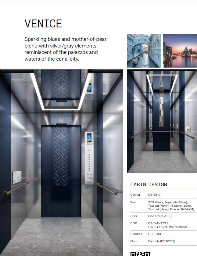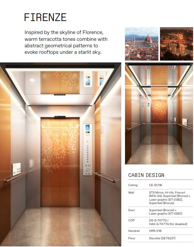 Cabin được chế tác hài hòa, đẹp mắt. Các bộ phận thể hiện được tính thẩm mỹ, tiện dụng kết hợp với vật liệu cao cấp khiến. Enta200 lan tỏa không gian của sự cao cấp từ thiết kế chung của công trình vào bên trong thang máy. Các thiết kế được lấy cảm hứng từ các địa danh nổi tiếng trên thế giới.