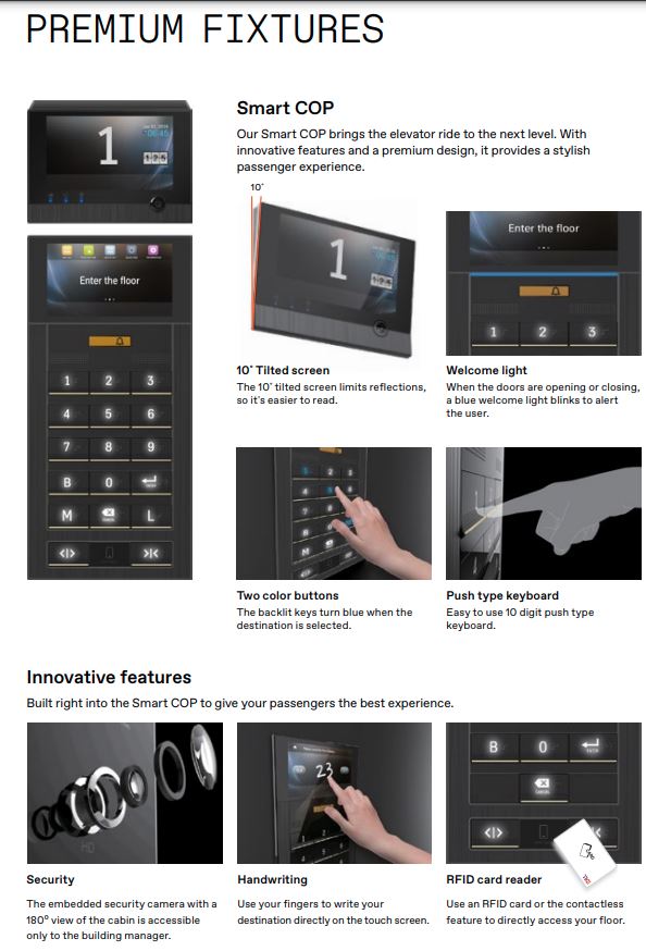 TKE cũng cung cấp nhiều tùy chọn thẩm mỹ cho dòng sản phẩm thang máy gia đình của mình. Người sử dụng có thể tùy chọn về kiểu dáng, màu sắc và vật liệu của thang máy để phù hợp với nội thất của căn nhà. TKE cũng có các lựa chọn về tay nắm và bảng điều khiển. giúp người dùng có thể lựa chọn thiết kế thang máy tùy theo sở thích cá nhân.
