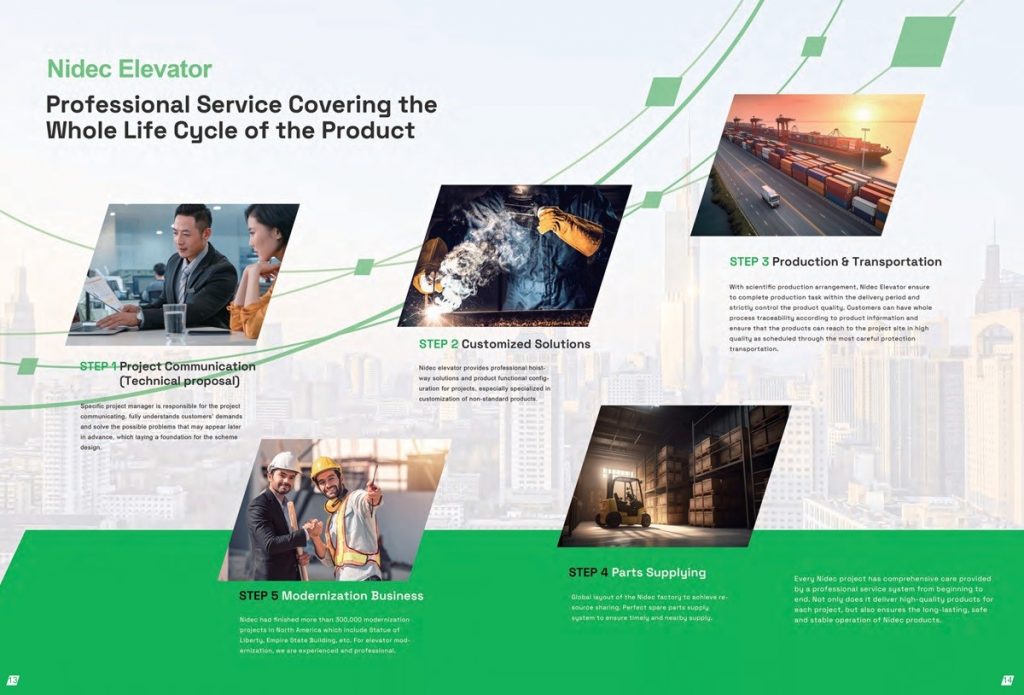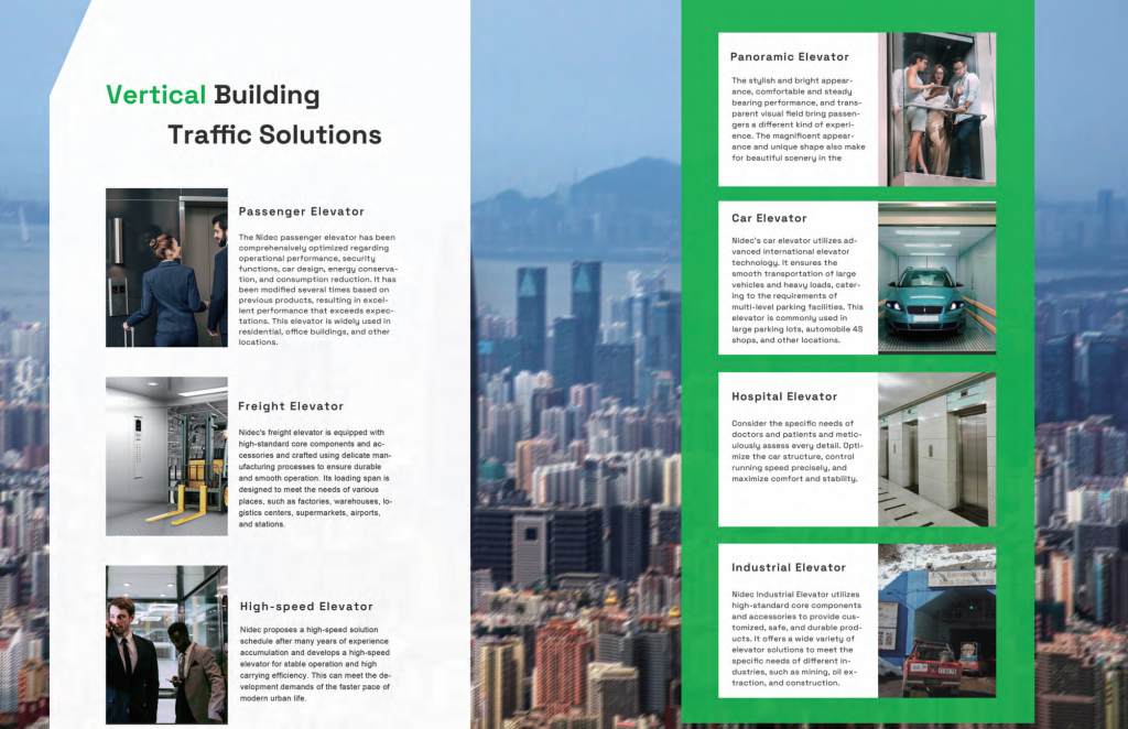 Xây dựng các tòa nhà cao tầng hiện đại còn đòi hỏi các hệ thống thang máy phải linh hoạt trong thiết kế, phù hợp với các yêu cầu riêng biệt của từng dự án, từ khả năng vận hành liên tục đến đảm bảo tối đa khả năng chịu tải. Thang máy Nidec đáp ứng các tiêu chuẩn này thông qua các giải pháp tối ưu về cấu trúc, công nghệ và dịch vụ hậu mãi.